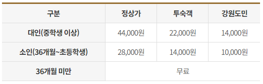 - 상기 금액은 2인 기준이며, 추가인원 1인당 대인 55,000원 / 소인 35,000원 추가.